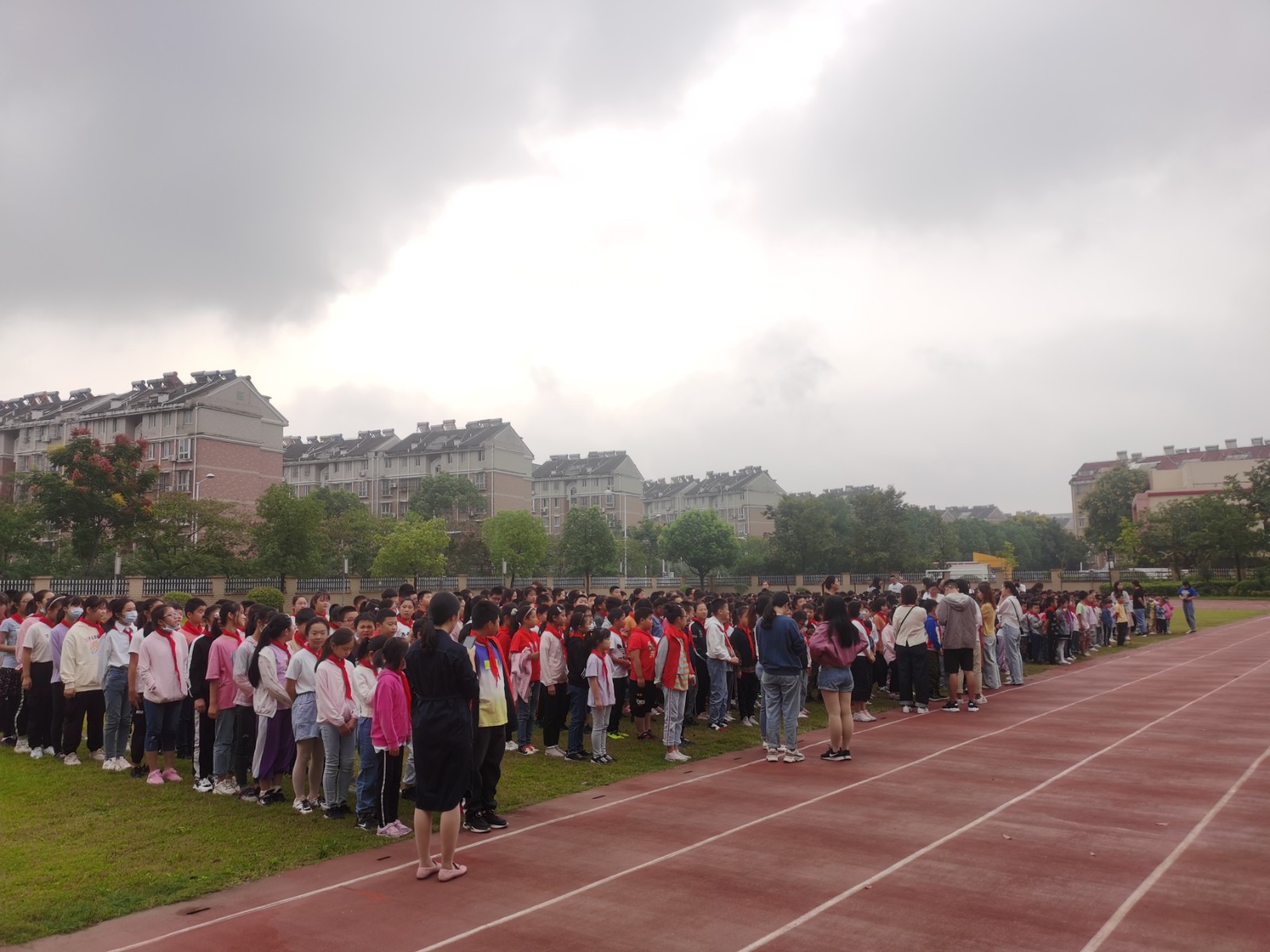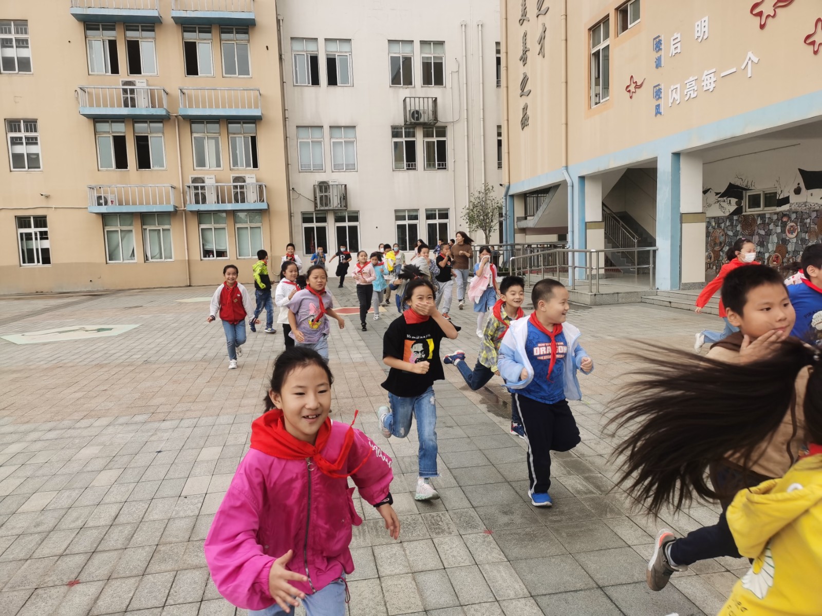 上午8:00,王振兴老师首先用广播提醒全校师生演习即将开始,听到警报后不要惊慌,按照规定疏散路线有序向操场撤离,随后警报响起,各班有序撤离,本次疏散共用时1分58秒。到达指定位置后,各班清点人数并向总指挥谢霞校长汇报。