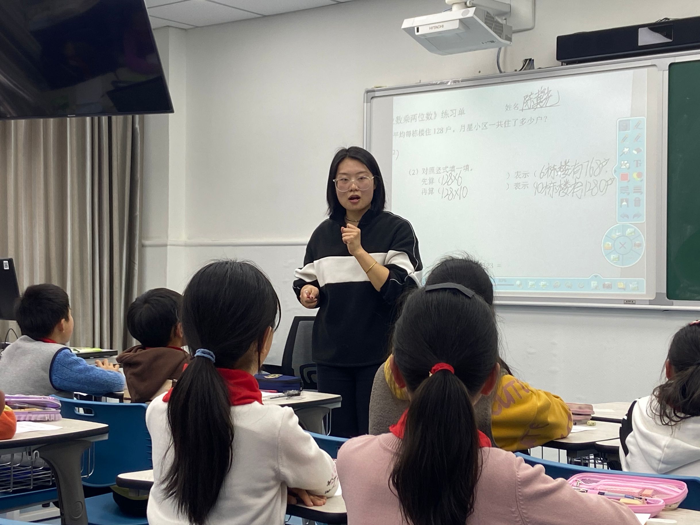 在接下来的研讨环节,老师们针对两节课说了自己的建议。对于吴老师的课,老师们建议教师的语言应该在学生说的基础上,再次总结提升,形成规范的语言表达。施震校长指导吴老师在课堂中应该紧紧围绕教学目标安排教学内容。处理估算的环节时,应该在笔算的基础上优化计算方法。让学生经历四个步骤:理解算理,掌握算法,正确计算,问题解决。充分借助实物图、点阵图、数的分成等方式理解算理。