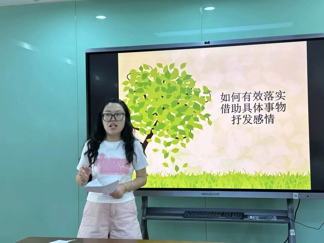 两次教研最后,孙梦琳老师和朱冬梅老师分别带来了《以物传情—探索阅读中的情感共鸣艺术》和《如何有效落实借助具体事物抒发感情》两场讲座,老师们认真学习,结合具体文本积极讨论。
