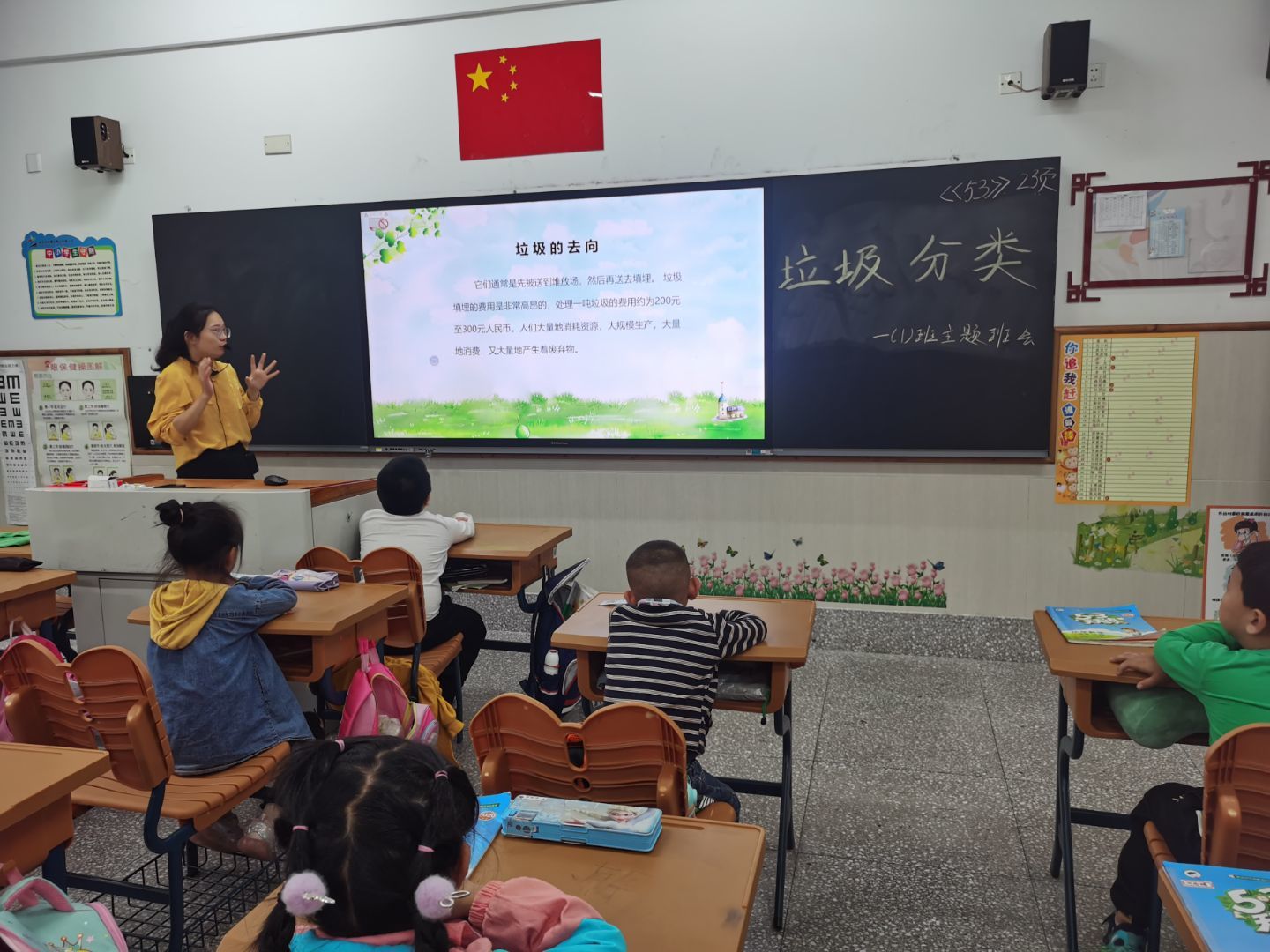 在班会课上,老师利用PPT播放的宣传方式,让全班同学了解了垃圾分类的概念,让他们知道垃圾可分为四类:可回收物、厨房垃圾、其他垃圾和有害垃圾,认识垃圾是宝贵的再生资源,树立保护环境和节约资源的意识。