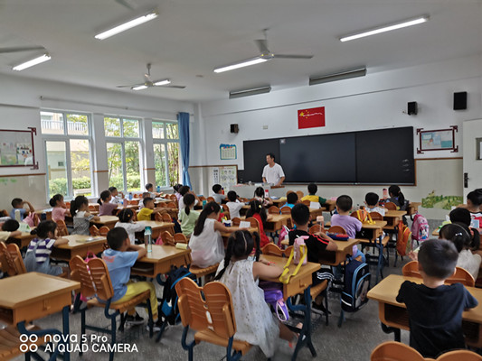 阅读是学校的特色项目,开学前班主任让学生做好读书心得分享的准备,可以是读书笔记、读书心得、读书小报等。中午时间,各班有序开展暑期全阅读分享,一年级是刚刚入学的学生,一双双求知的眼神,班主任带学生们读了《大卫上学去》电子书,孩子们听得津津有味,不时露出天真可爱的笑容。二~六年级学生根据自己暑期的阅读,和同伴分享自己的读书心得,交流中思维的火花在碰撞。老师们指导阅读的方法和习惯,在学生心中播下阅读的种子,成为学生课外阅读的点灯人。