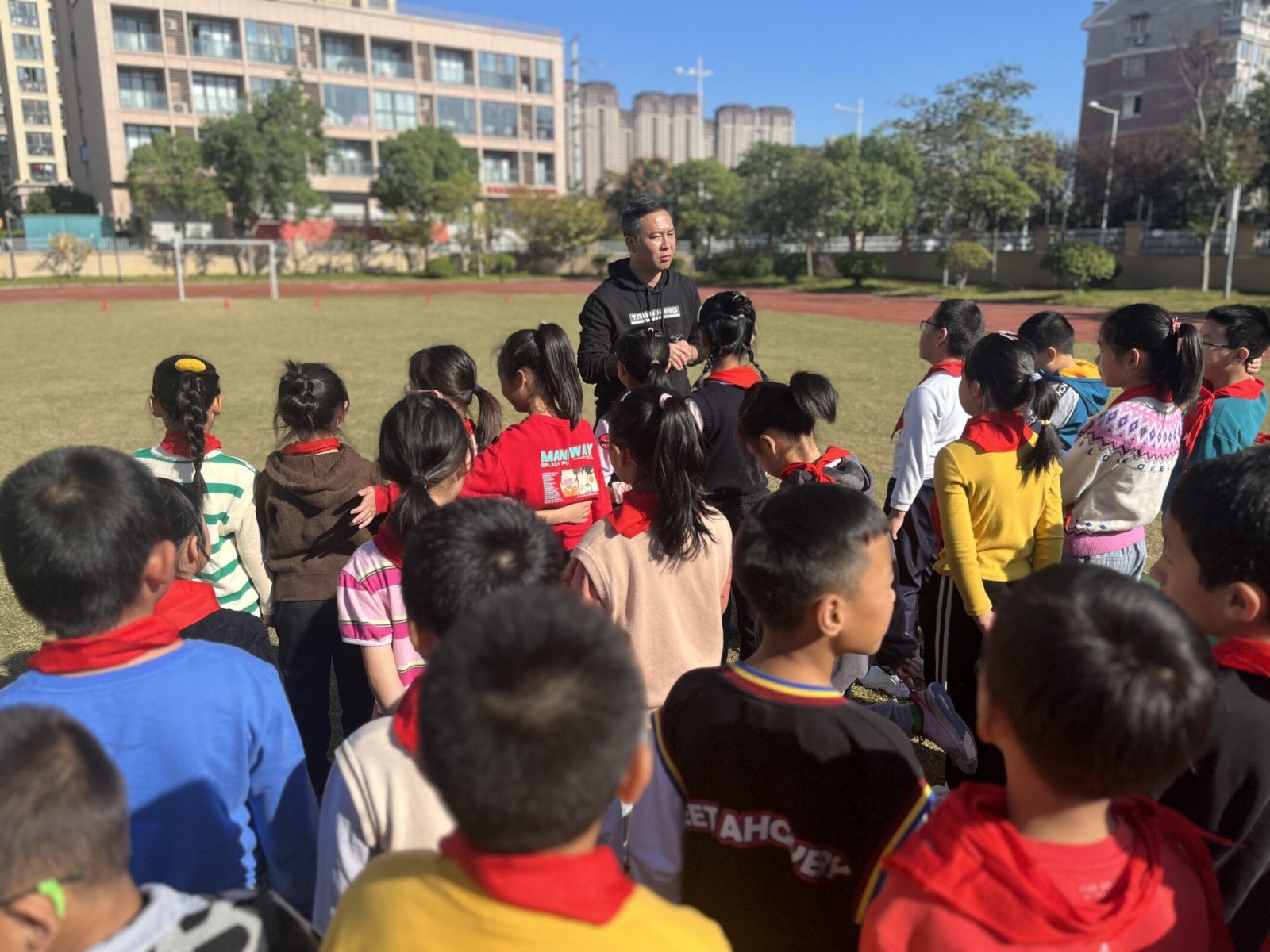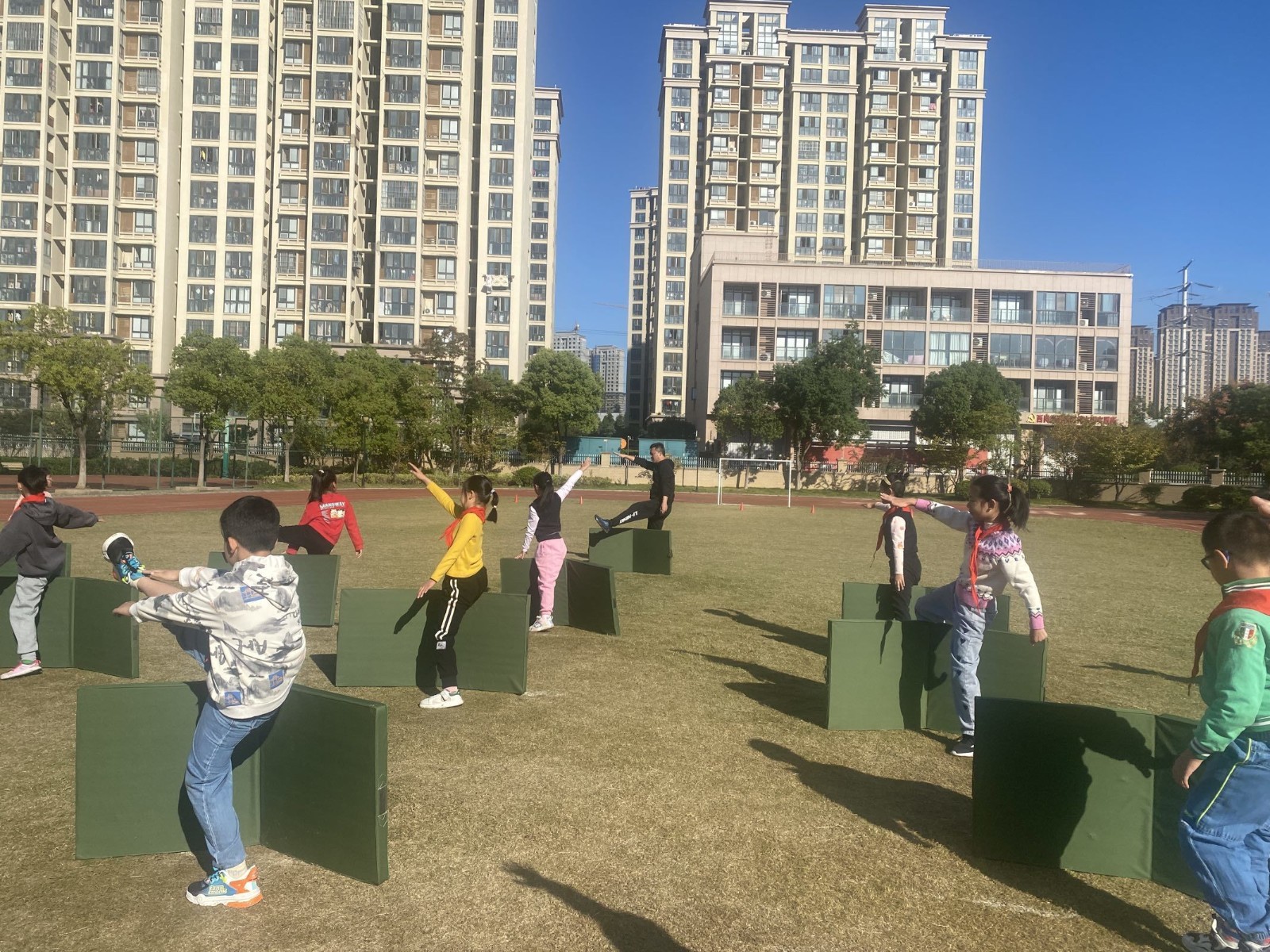 10月12日上午第一节课,在摄山星城小学天佐路校区举行了“骨干教师展示课”的校内教研活动。由周灵老师执教的水平二三年级《跨越式跳高》课程,体育组成员到现场观课。