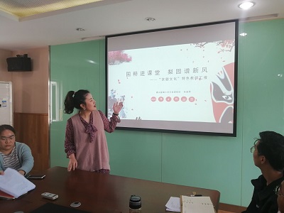 首先由学校特色教师孙丽男老师汇报,主题为“国粹进课堂,梨园谱新风”。孙男老师创新将京剧和美术脸谱相结合,在课堂上进行实践,指导学生呈现了许多创意作品,彰显教师特色。