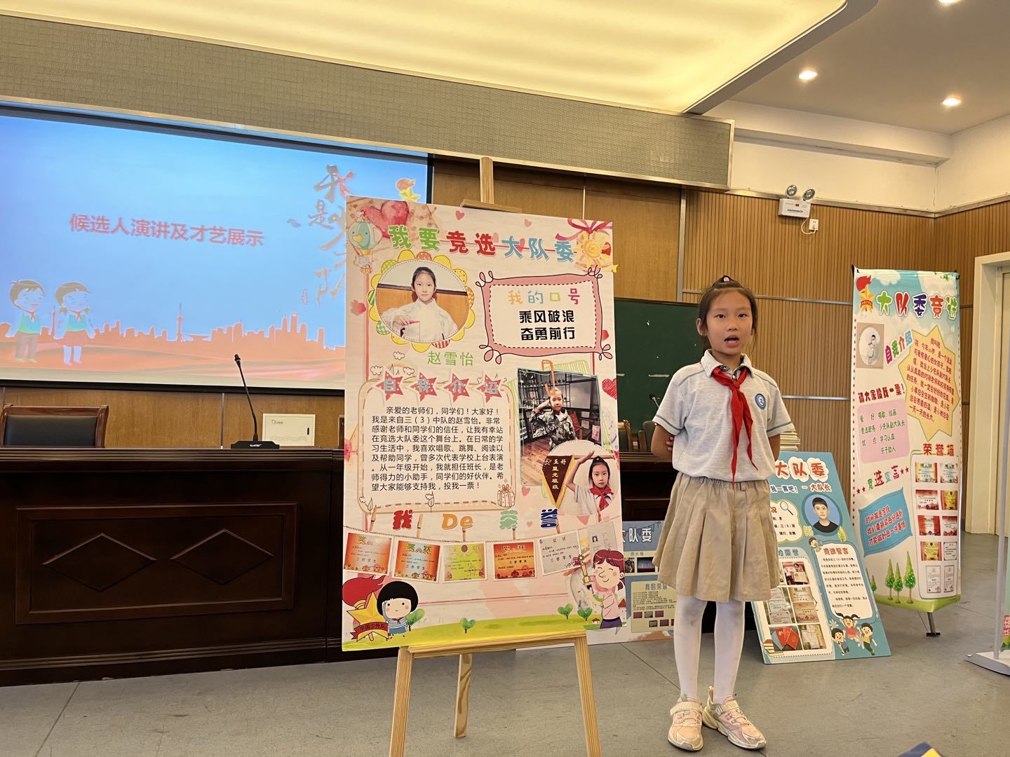 本次竞选活动由校领导、教师代表、学生代表组成的评委组进行评分。竞选活动中,候选队员充满自信,通过精彩的竞选演说,热情激昂地宣讲自己对大队委工作的热情和向往,他们精彩的表现获得了在场同学和老师的阵阵掌声。