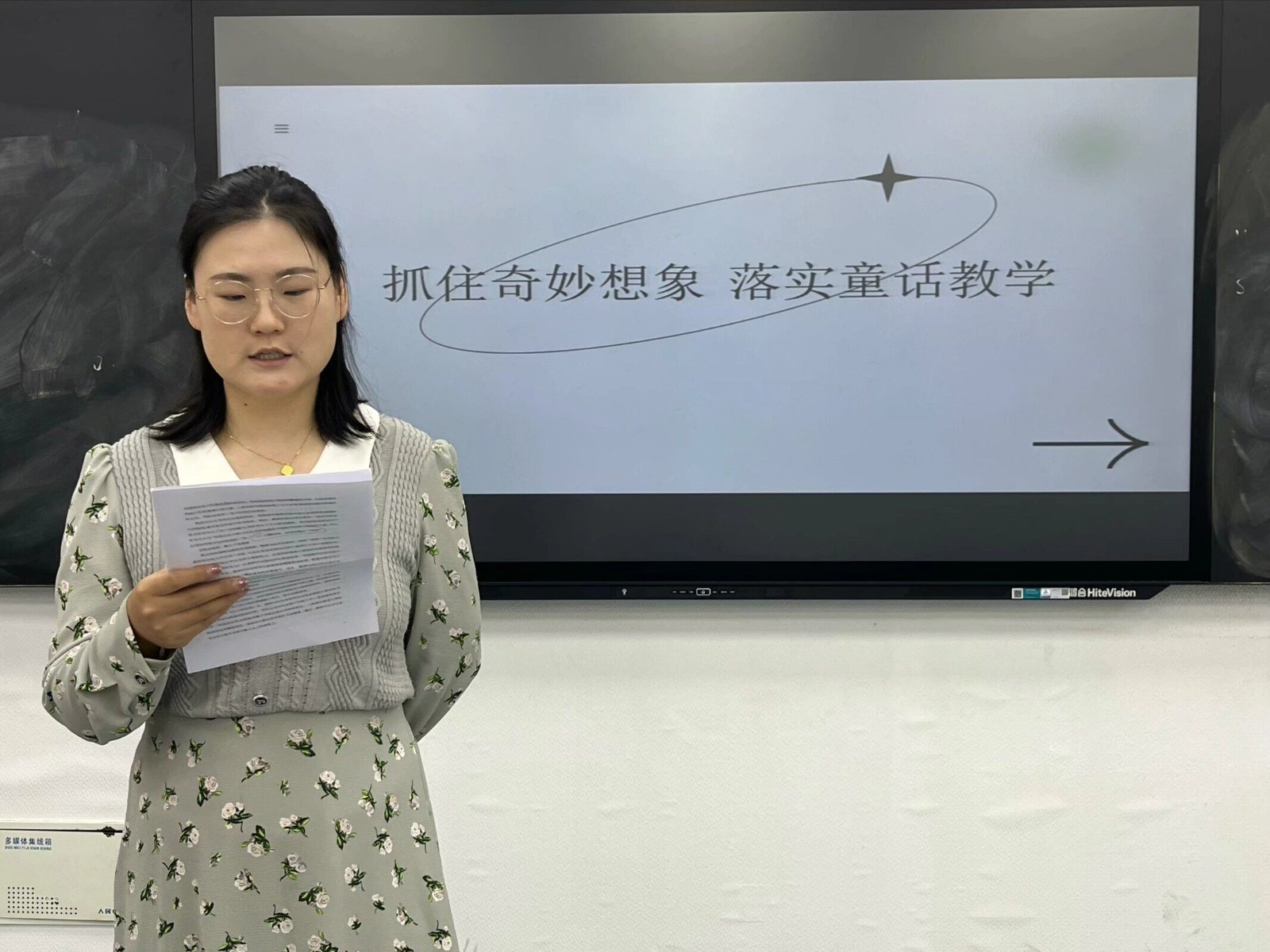 两次教研的最后,杨露老师带来了“抓住奇妙想象,落实童话教学”的主题讲座。讲座上,杨老师立足教材,以生为本,指出:一要把握经典童话名篇的特点,体会人物真善美的形象,二要注重发挥课文的导读功能,激发学生读原作的兴趣。教师们齐聚一堂,根据教材和学情进行热烈研讨。