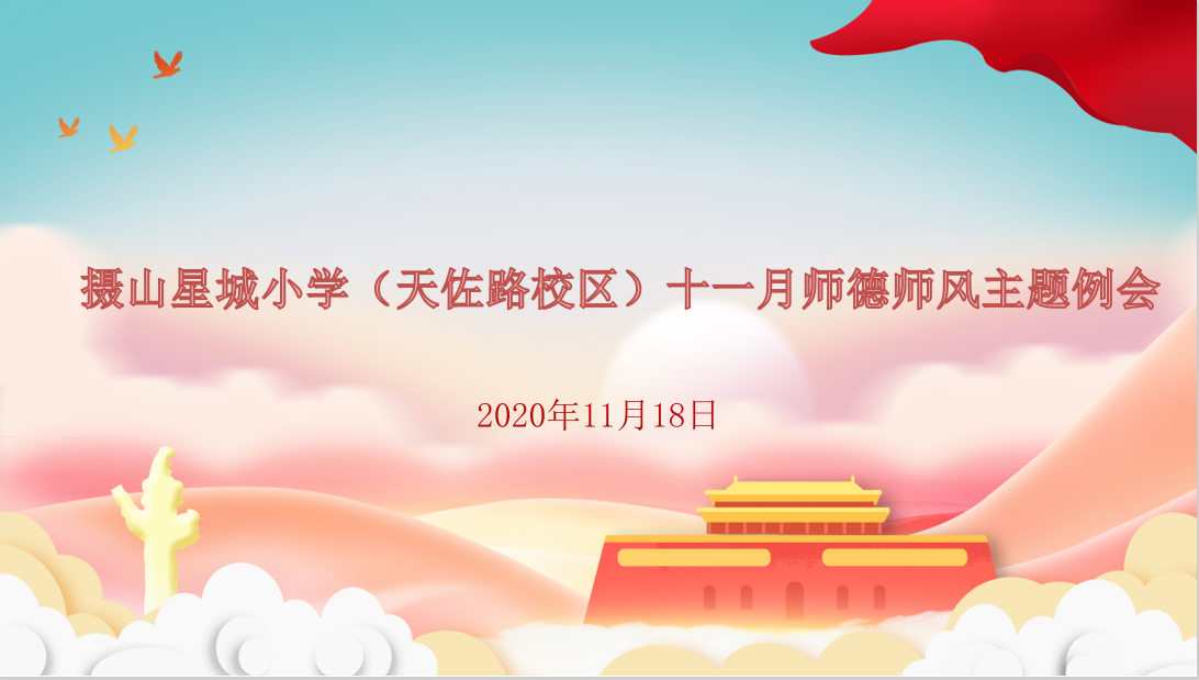 为深入落实立德树人根本任务,加强师德师风建设,培养高素质教师队伍,践行做新时代“四有”好教师,我们天佐路校区全体教职员工于11月18日周三下午两节课后,在阶梯教室召开了11月师德师风专题例会。