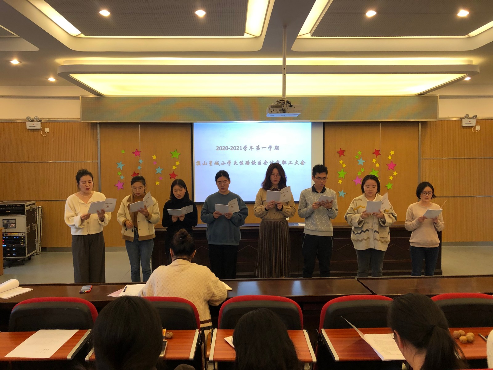 接着,德育处孙丽男主任带领今年新入职的7位教师齐读“教师誓词”,并要求全体教师在承诺书上郑重签下自己的名字,并拍照提交,存入每位教师的“师德电子档案”。