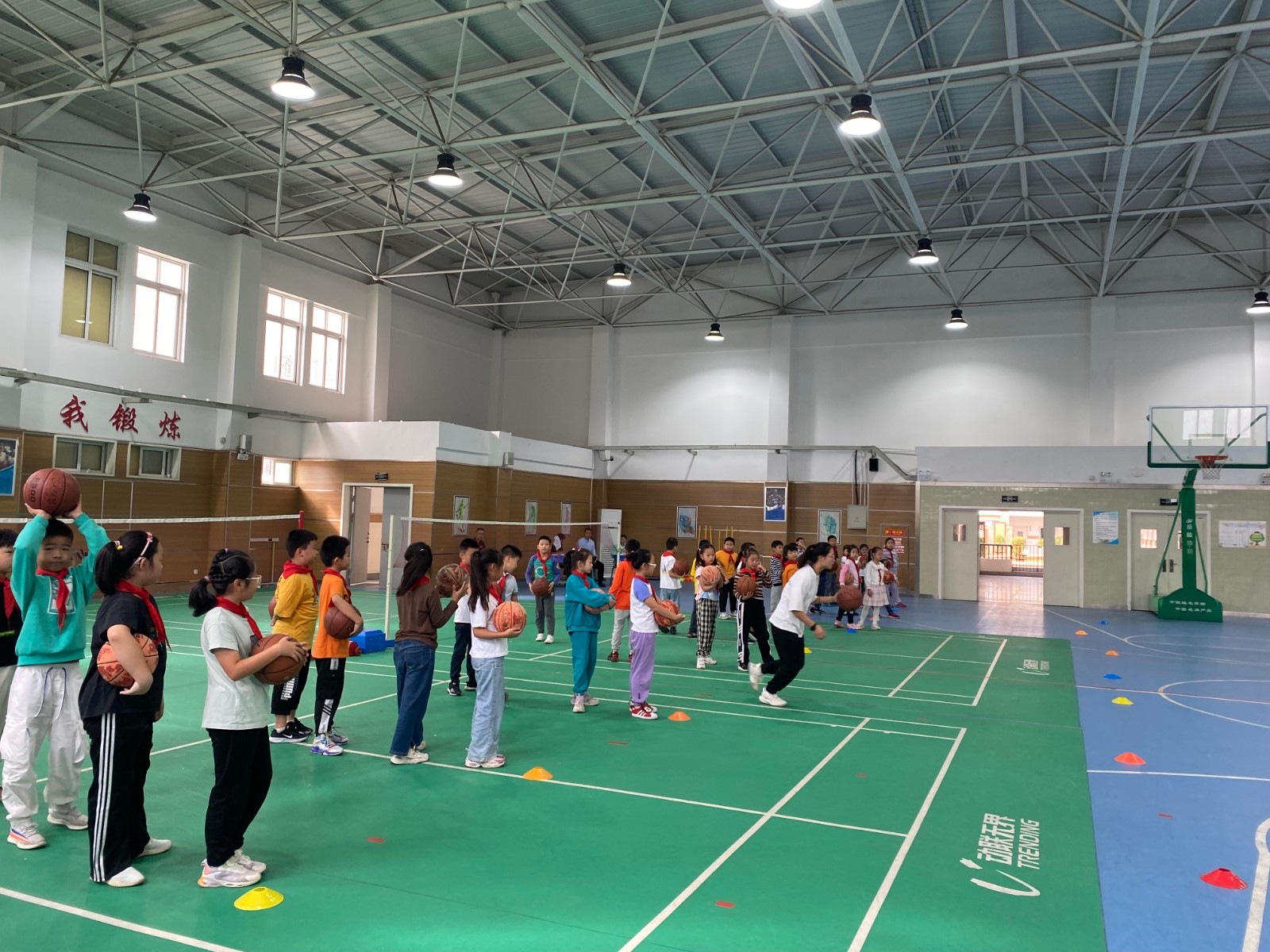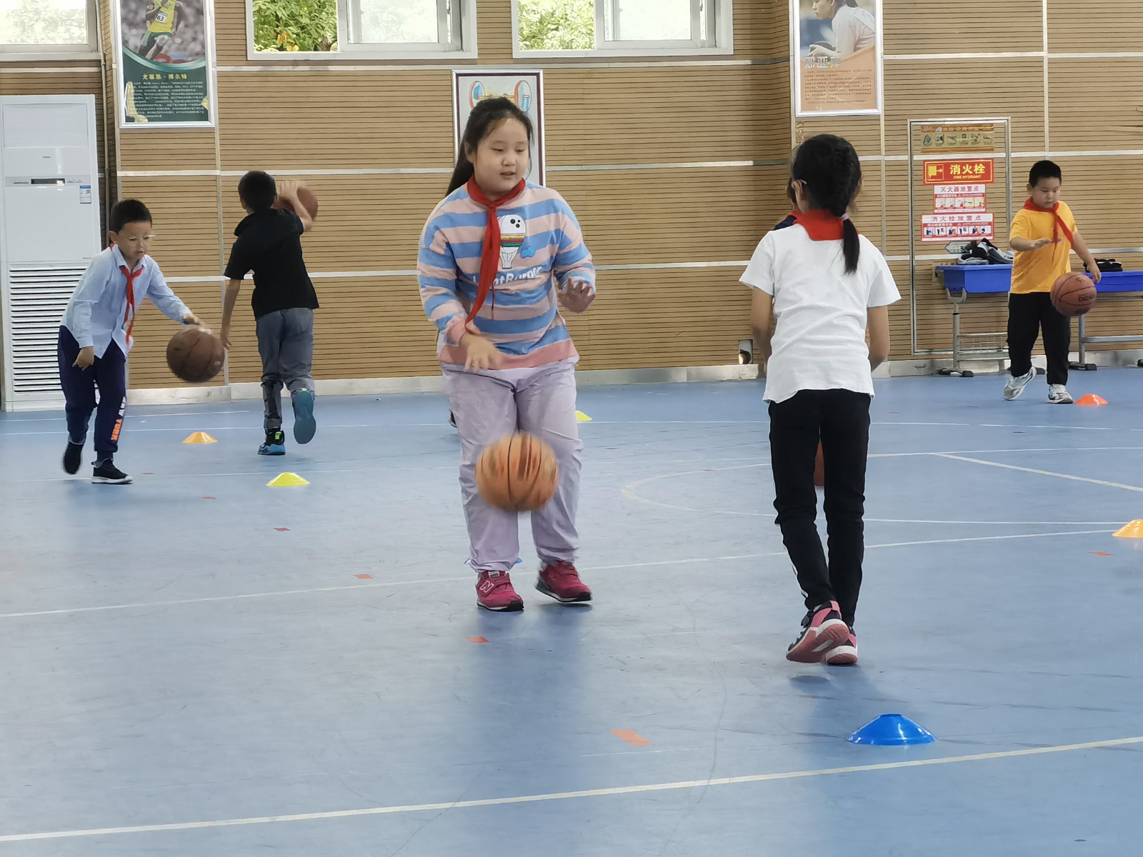 课的准备部分,罗老师通过情景导入,将篮球比作小怪兽,将同学们比作驯兽师,激发学生兴趣。热身环节“驯兽师们”赶着自己的“小怪兽”巡视场地,认识篮球场的各条线,游戏结束教师领做韵律操帮助学生快速热身。课的基本部分,罗老师带领同学们进行闯四关的游戏,第一关:听话的“小怪兽”,组织学生复习原地高低运球,同时引导学生尝试体验行进间运球。第二关:“小怪兽”换位,通过音乐控制练习节奏让学生体验原地运球和行进间运球拍球部位的区别。第三关:“小怪兽”过独木桥,此关让学生进行直线运球,准确找到球的落点。第四关:“小怪兽”过关卡,通过学生轮流防守结合运球接力赛达到学练赛评有效融合。课堂氛围活跃,能够做到精讲多练,课堂密度与强度达标。