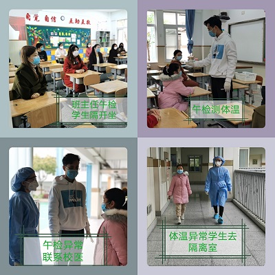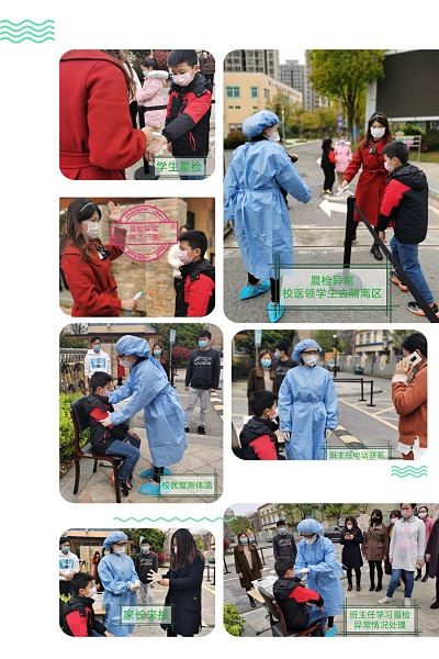 看到这肯定会有家长发出疑问了,这些都是针对学生的防护措施,那老师们难道就不用检测吗?当然不是,老师也和学生一样进行早午检测,如果出现异常者,老师们会有专人专车接走隔离。