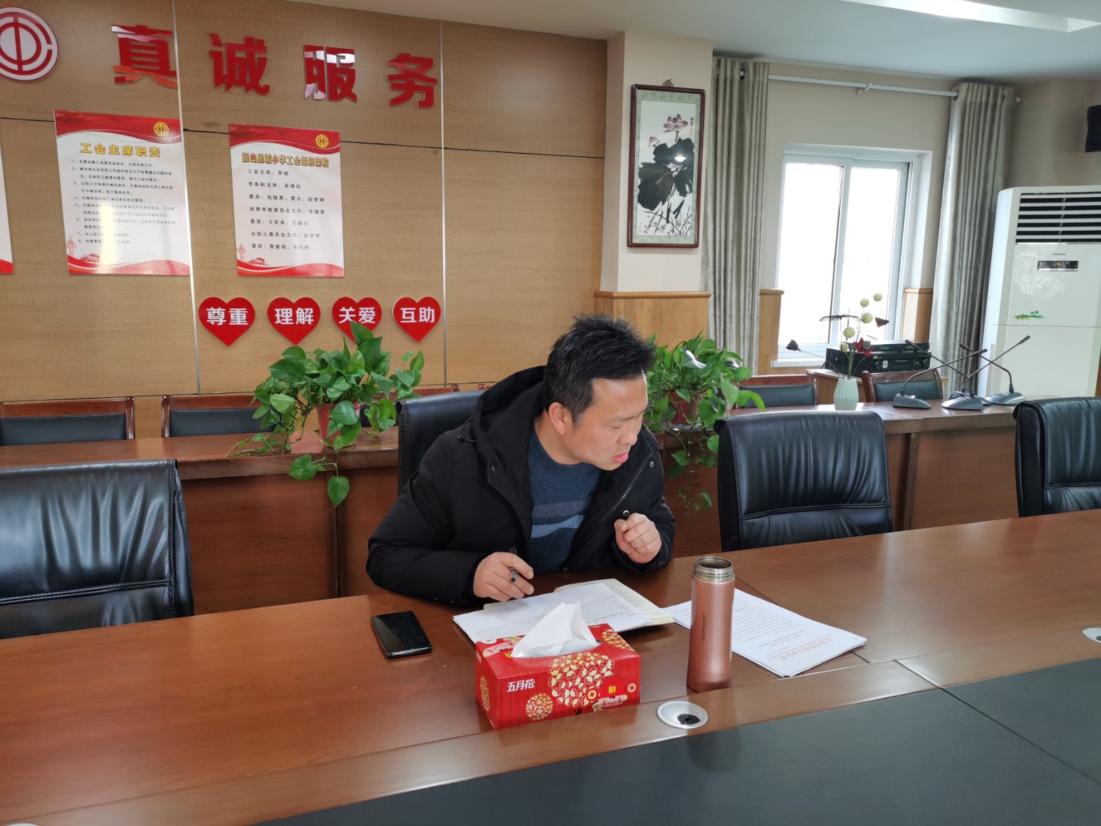 1月14日下午在三楼会议室召开后勤期末工作布置会。分管后勤的副校长周灵,后勤副主任胥辉,副主任路琼琼,干事王振兴,分管图书馆的常青老师以及校医黄曼琳老师参加会议,会议内容主要围绕后勤期末阶段工作的相关事宜进行沟通和协调。