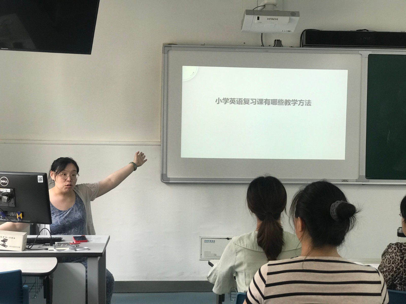 课毕,朝阳路校区的王岚老师就如何提高期末复习效率进行了经验交流和分享。王老师从复习课的的教学目标及教学途径进行了深刻的阐述,并且对老师们的教学困惑发表了自己的看法,让大家受益匪浅。王老师系统地从语音、词汇、语篇、语法、文化这几大版块入手,带给我们详细实用的教学策略指导。