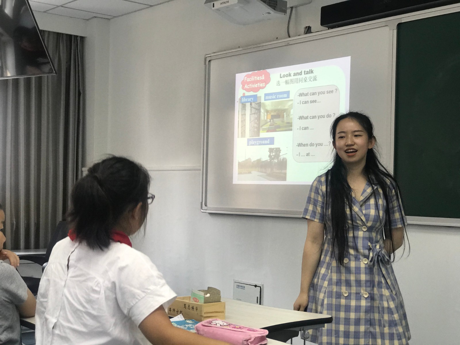 首先由天佐路校区的王雯倩老师带来了一节四年级复习研讨课。选择的内容为四年级一到四单元的整合复习。王老师热情活泼、活力四射,以我们的校园为情景导入,上课初始就很快抓住了学生的注意力,王老师能够关注学情,努力在课堂教学中挖掘学生的生长点,通过大量的富有思维含量的问题引发学生的思维,激活了学生的思维,充分体现了学生的自主学习力,通过猜一猜,说一说,写一写等有趣的活动,训练了学生听说读写看的语言技能,打破了以往的纯语言授课模式,真正做到了以生为本。