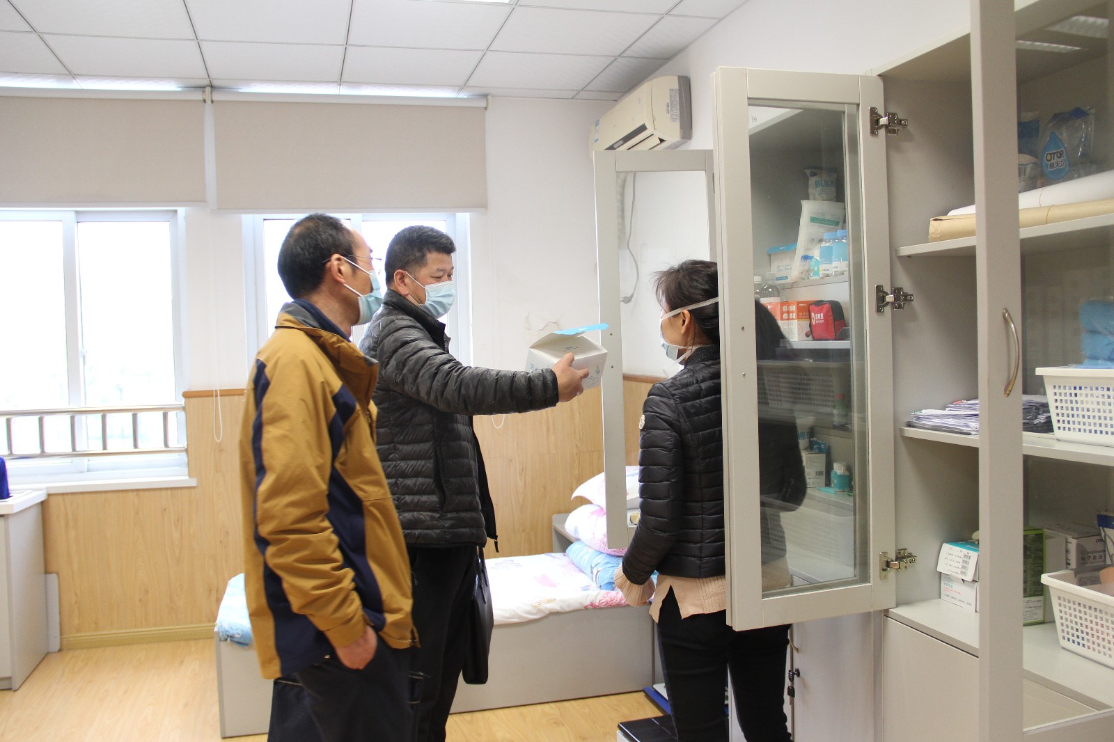 一进校门,门卫师傅和王聪老师对每一位进校的领导进行了体温检测并记录在册。检查组领导对照教育局提出的“关于学校疫情防控保障防疫物资储备的十五条”要求,到现场逐一进行了检查。询问了学校前期的准备工作,还有哪些困难需要帮助,检查了“防疫物资储备室”的物资储备情况,以及学校为突发事件设置的“隔离室”。