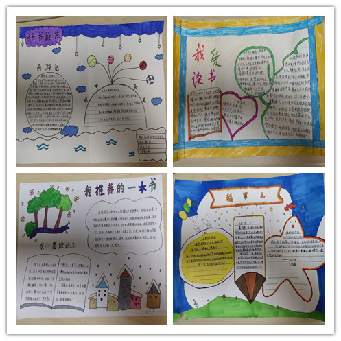 同学们爱读书,更会读书!滕文雅同学每次阅读之后都会在阅读记录本上记下好词好句,写下阅读感受,请老师、家长和自己一起评价,正是有这样一种好习惯,才让她的作文那么与众不同!除了腾文雅同学,三(5)班的其他同学还用制作书签、小小书、手抄报的形式,向大家推荐自己喜欢的书籍,看,这些作品多棒啊!