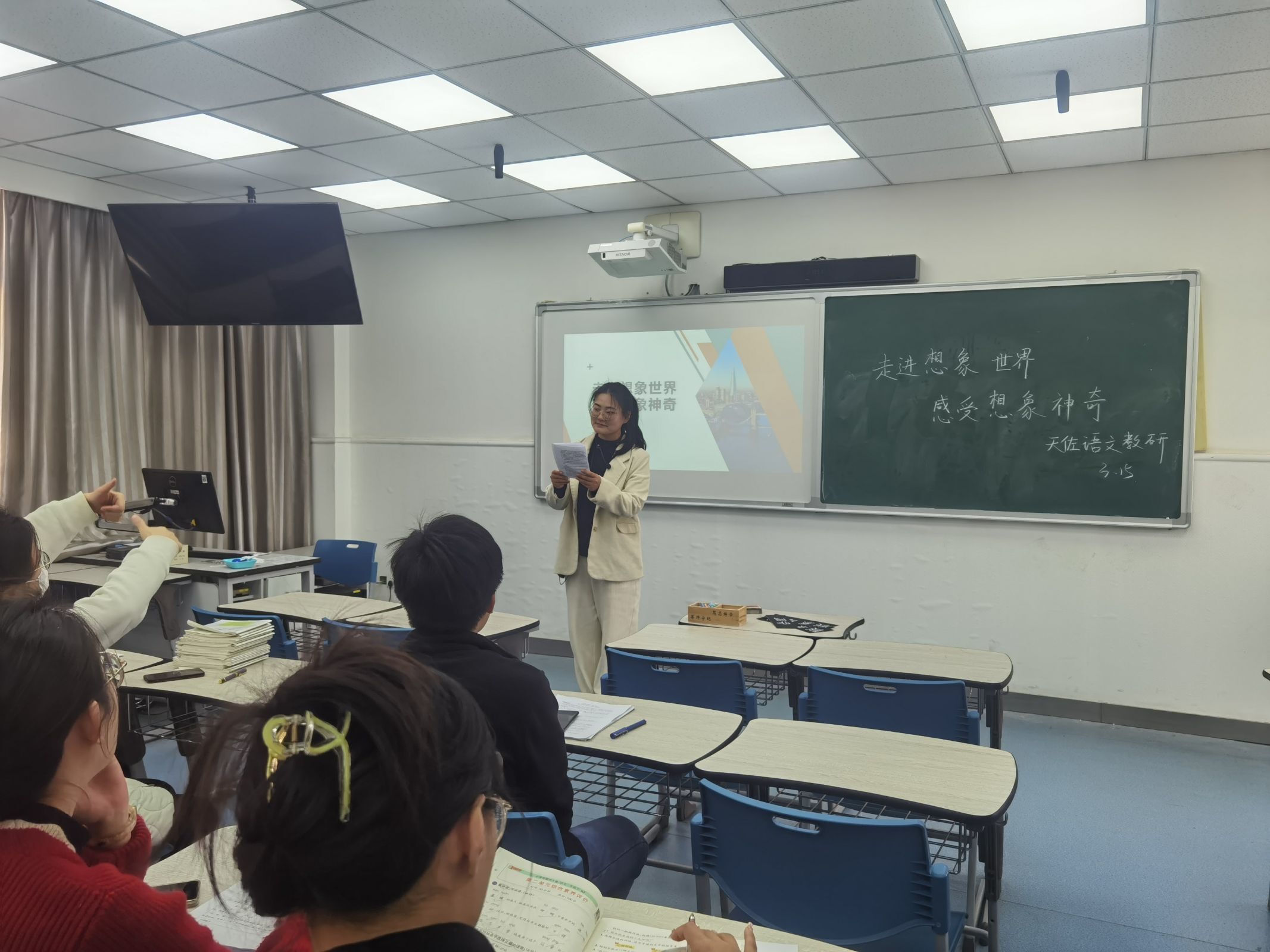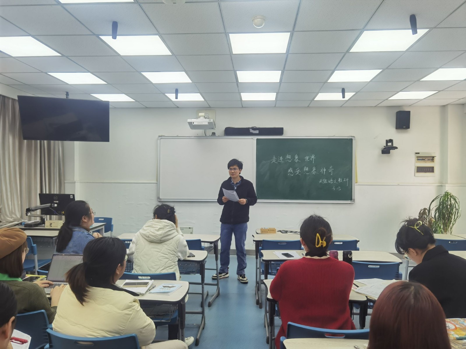 接着杨露老师开展讲座。爱因斯坦说:“想象力比知识更重要,因为知识是有限的,而想象力概括着世界的一切,推动着进步,并且是知识进化的源泉?正确、有效地引导学生写好想象作文,通过想象作文在培养学生的语言能力的同时发展学生想象能力,这是我们语文老师的责任和使命。