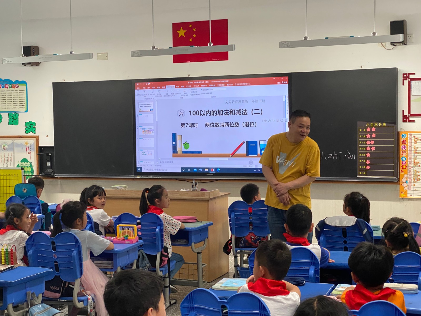 上课铃准时响起,学生们进入教室,迅速调整到了上课状态。第一节课是由傅钰老师执教的数学课,教学内容是《两位数减两位数》。在课堂上,傅老师关注每一位学生,寓教于乐,充分地激发了每一位学生学习的积极性,对于新知识,运用已经学过的旧知识,深入浅出,让同学们温故知新,同时通过在课堂上的小练习,进一步加深学生印象,熟练运用。