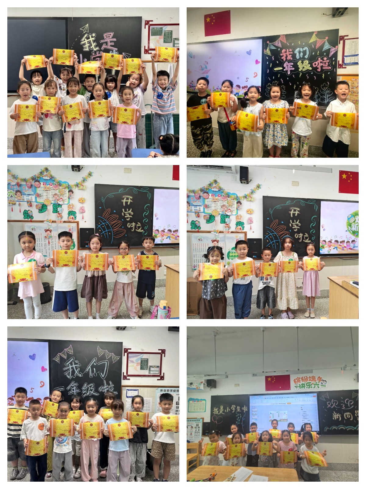 培训从上午8:20持续至15:00,六大核心模块齐头并进:认知教育引领新生探索校名背后的故事,熟悉校园设施的每一个角落,轻松区分上下课的铃声;队列训练中,孩子们在‘快、静、齐’的指令下迅速排队,展现出良好的纪律性;礼仪教育则让孩子们明确了仪容仪表的标准,懂得了公共礼仪的重要性;课堂常规教育通过朗朗上口的要诀与口令,教会了学生们如何做好课前准备;行为习惯教育引导孩子们合理规划课间时光,学会整理课桌,同时了解离校的各项规范;学习习惯教育则着重于文具的准备与使用,为孩子们培养良好的学习习惯打下坚实的基础。每位学生在完成相关模块的学习后,都将获得1至3个印章作为鼓励。