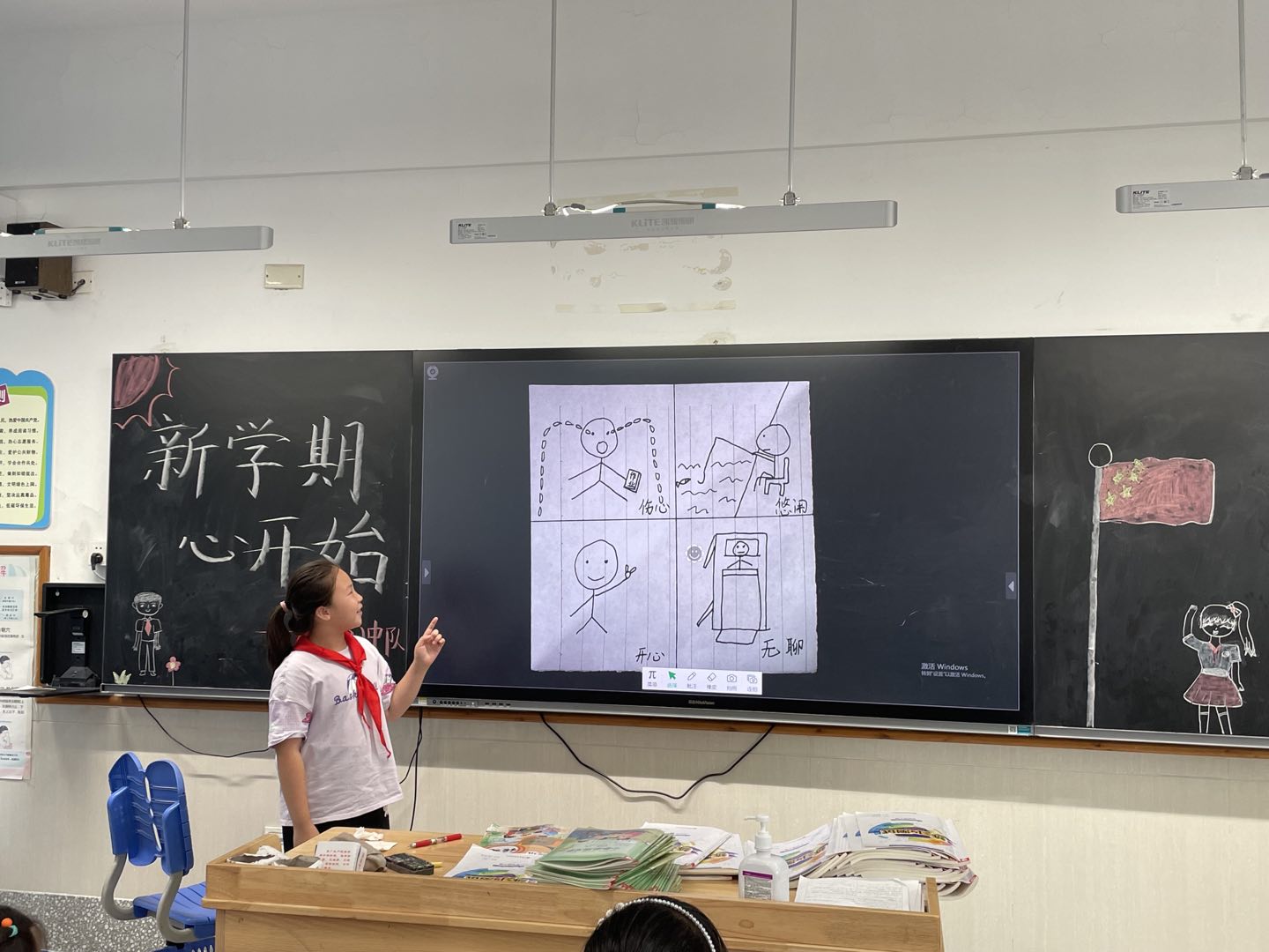 低年级的小朋友刚从假期结束,对于校园生活既有期待也有挑战,因此教师引导学生分享自己的暑假生活,拉近了学生与校园的距离。同时通过介绍自己、校园小调查等活动,锻炼了学生的口语表达能力,增进了师生间的情感。