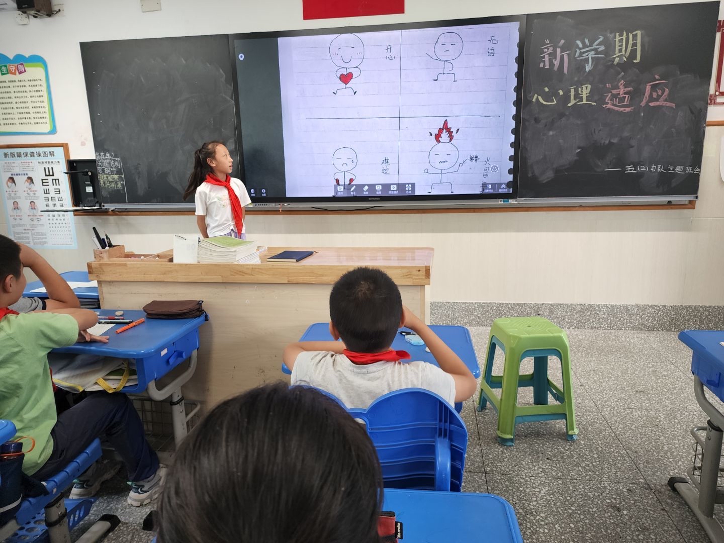 高年段的学生面临学业压力,因此此次心理班会课关注学生内心产生的较强烈情绪反应,了解学生内心积压的较多消极情绪,引导学生勇敢面对这些情绪,并尝试学习合理调控消极情绪的方法,解决自己内心紧张、害怕、焦虑等实际问题,为日常学习、生活做好良好心理准备。